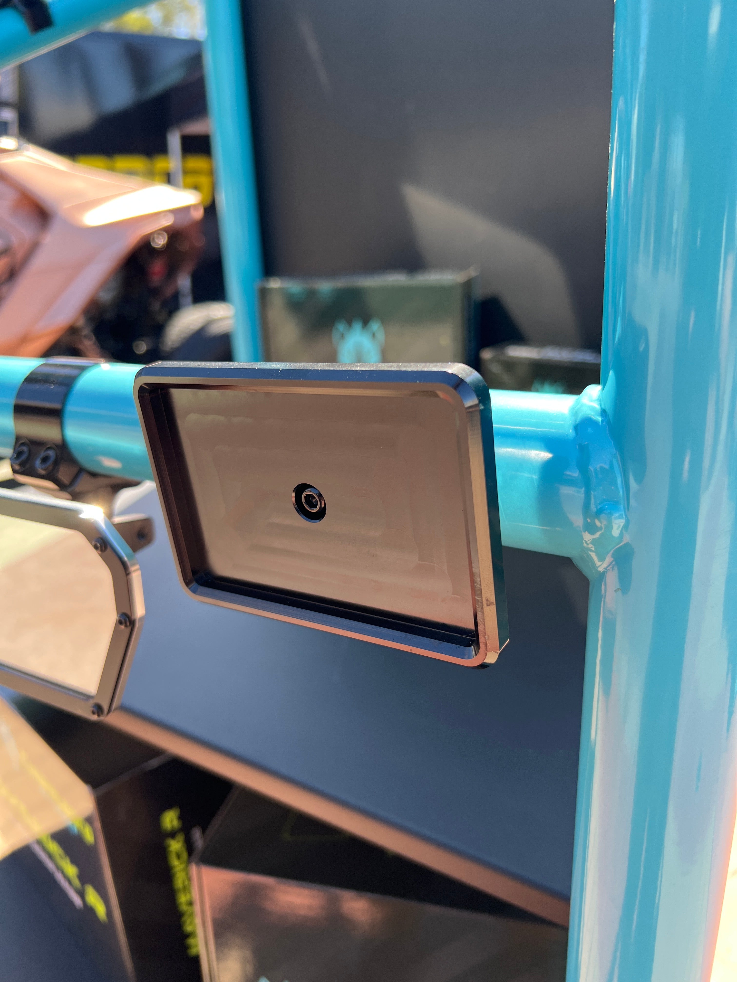 Our billet registration plate is the perfect way to display your registration. This registration is 4.0" x 2.6" and fits California green/red state registration stickers. This plate can also be rotated 90* for a perfect fit on your ride and is compatible with all of our various mounting clamps.