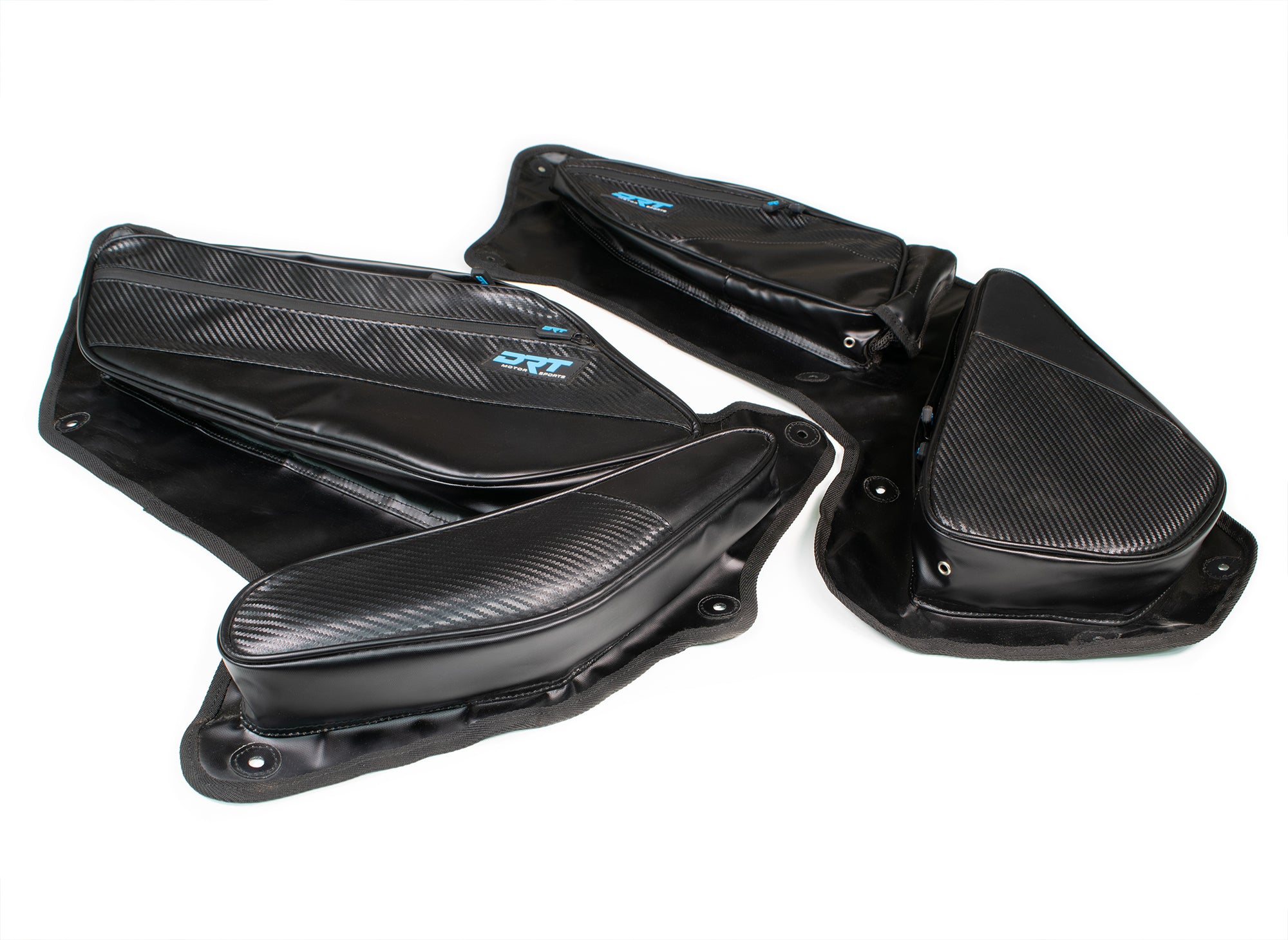 20005SG01401 - DRT Motorsports RZR Pro XP / Turbo R / Pro R 2020+ Front Door Bag Set are designed to perfectly integrate with factory door frames and add storage at your hands reach. This location is convenient and accessible while you are secured into the vehicle. These bag sets feature 2 convenient pouches to keep essential items handy. A foam knee pad is included for the lower portion of the door bag to protect your knees and add comfort. Made of high quality vinyl with carbon fiber accent material and water resistant zippers to keep items dry. Installation is a simple bolt in application and designed to sit securely between the door skin and frame. Remove the OEM door skin and reinstall with the door bag in between the frame and door skin using oem hardware. Works perfectly in conjunction with DRT Motorsports RZR Pro XP / Pro R / Turbo R 2020+ Door Arm Rests - Front Pair P/N : RZRPROAR1