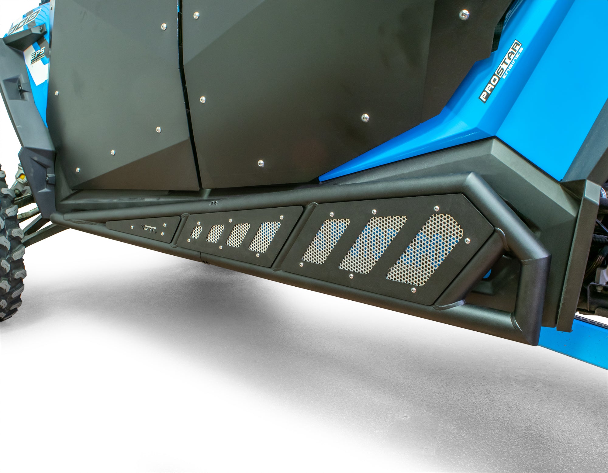 The DRT Motorsports 2014+ Polaris RZR XP 4 1000 and XP 4 Turbo 4 seat Rock Sliders are designed to protect your RZR from rocks and obstacles while out on the trail. The RZRXPRS4 rock sliders were built with the toughest trails in mind. DRT Motorsports ensured that no important ground clearance is lost when installing this critical product to your vehicle. The DRT Motorsports rock sliders are constructed from 1.25" extra thick tubing with removable steel panels and powder coated in DRT"™s signature sand black powder coating.