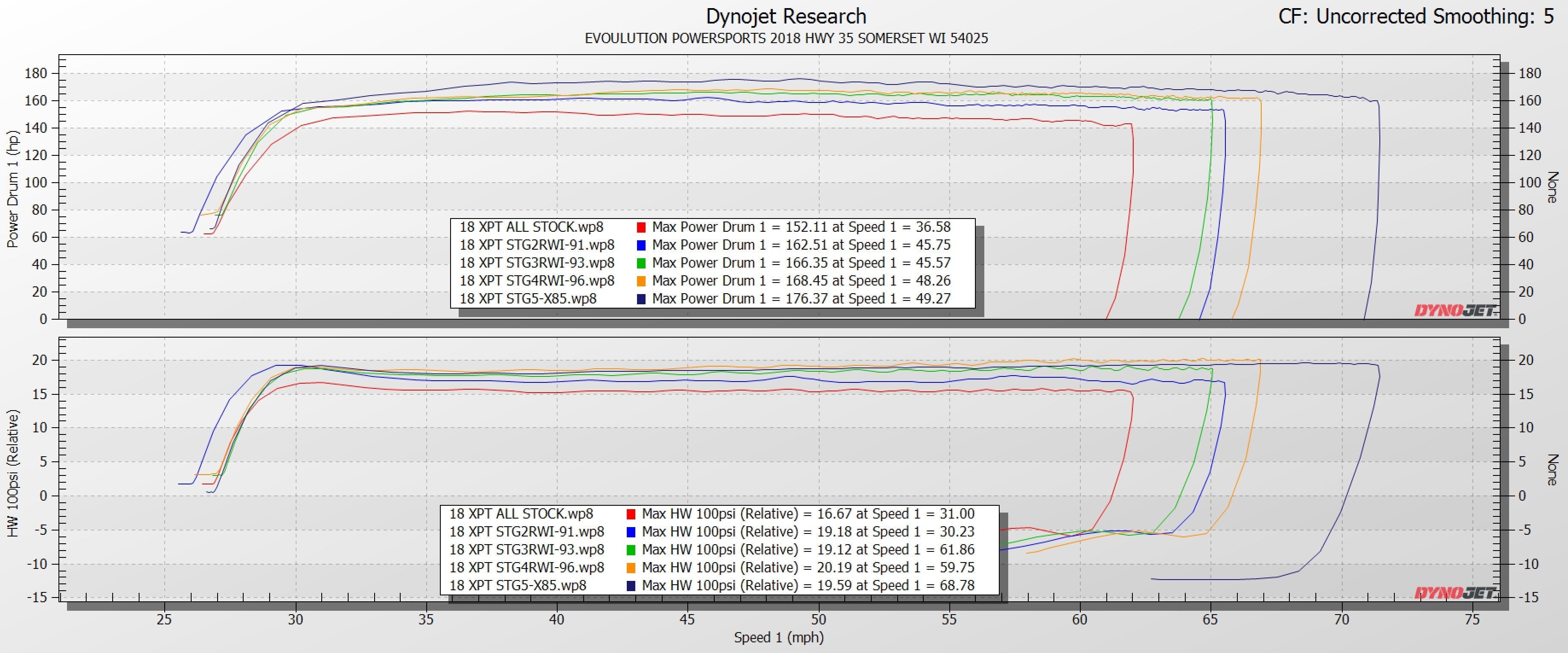 | STAGE 5RWi-X85 | E85 | 20 | 8 PSI | 176 | 196 | 1300cc Injectors, Wastegate Actuator |