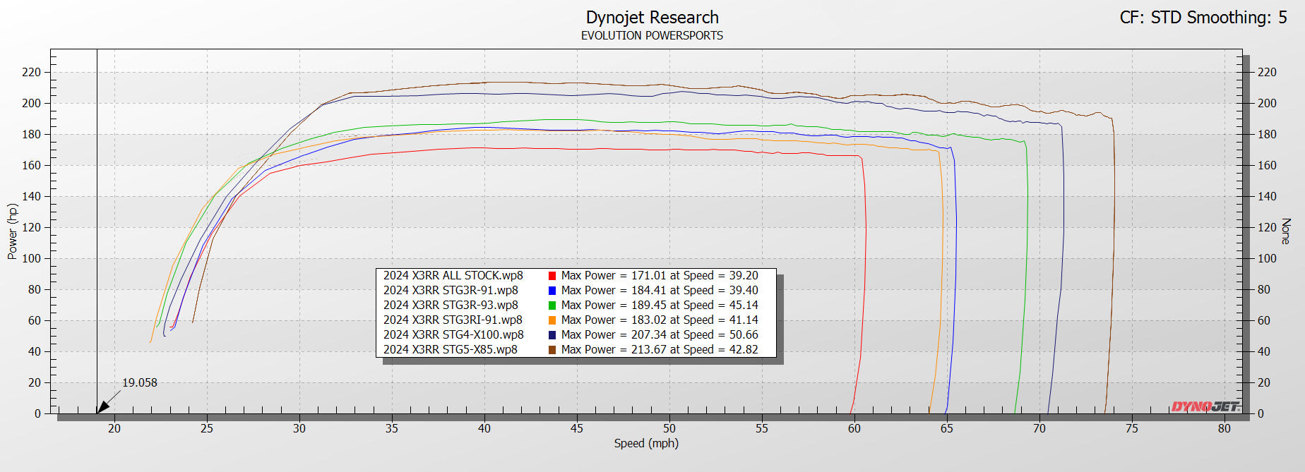 The Can-Am X3 Turbo RR is such an amazing machine, it deserved an enhanced EVP dyno testing and field-testing regimen in order to bring you only THE best tunes available, anywhere! Field-testing the beta stock injector and stock turbo tunes was started in St Anthony, ID. Conditions could not have been worse for a SXS. 93° F and 5500' elevation created a density altitude of 9300'. Once we proved the tunes there, we drove straight to Glamis, CA for some of the worst torture-testing we’ve ever done on any vehicle. First, we filled up our X3 with poor California 91 Octane fuel and with ambient temperatures at 110° F. We ran each tune on both Oldsmobile and at the sand drags over and over again. And we’re confident our tuning is the most thoroughly tested in the industry.