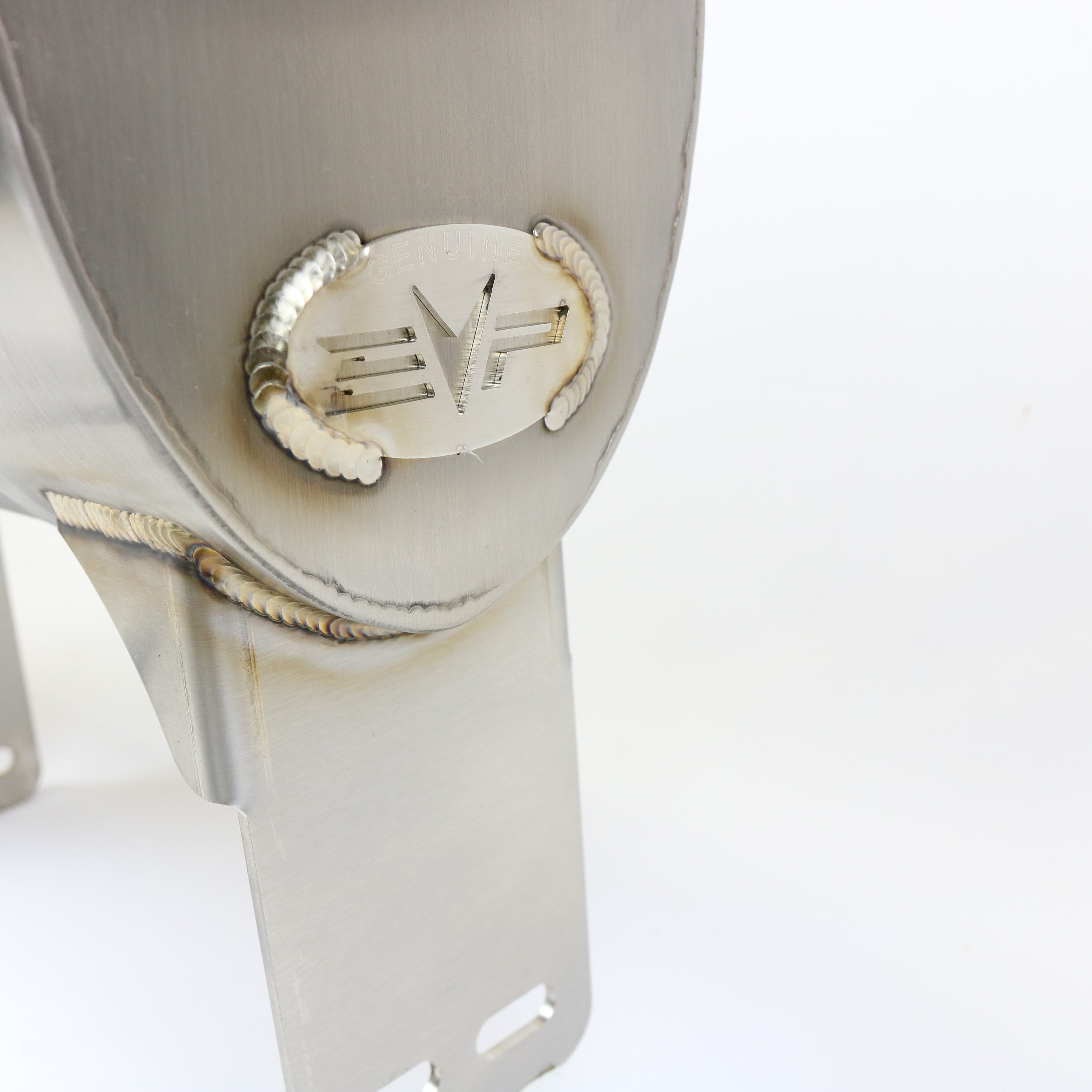 Keep Rear Valence - Exhaust comes with a water jetted and black powder coated aluminum block off plate for the factory exhaust hole. This option also comes with Red, White and Brushed Aluminum EVP logo accents, as well as a template for minor side trimming of the OEM rear valence where the exhaust pipes exit the EVP muffler.