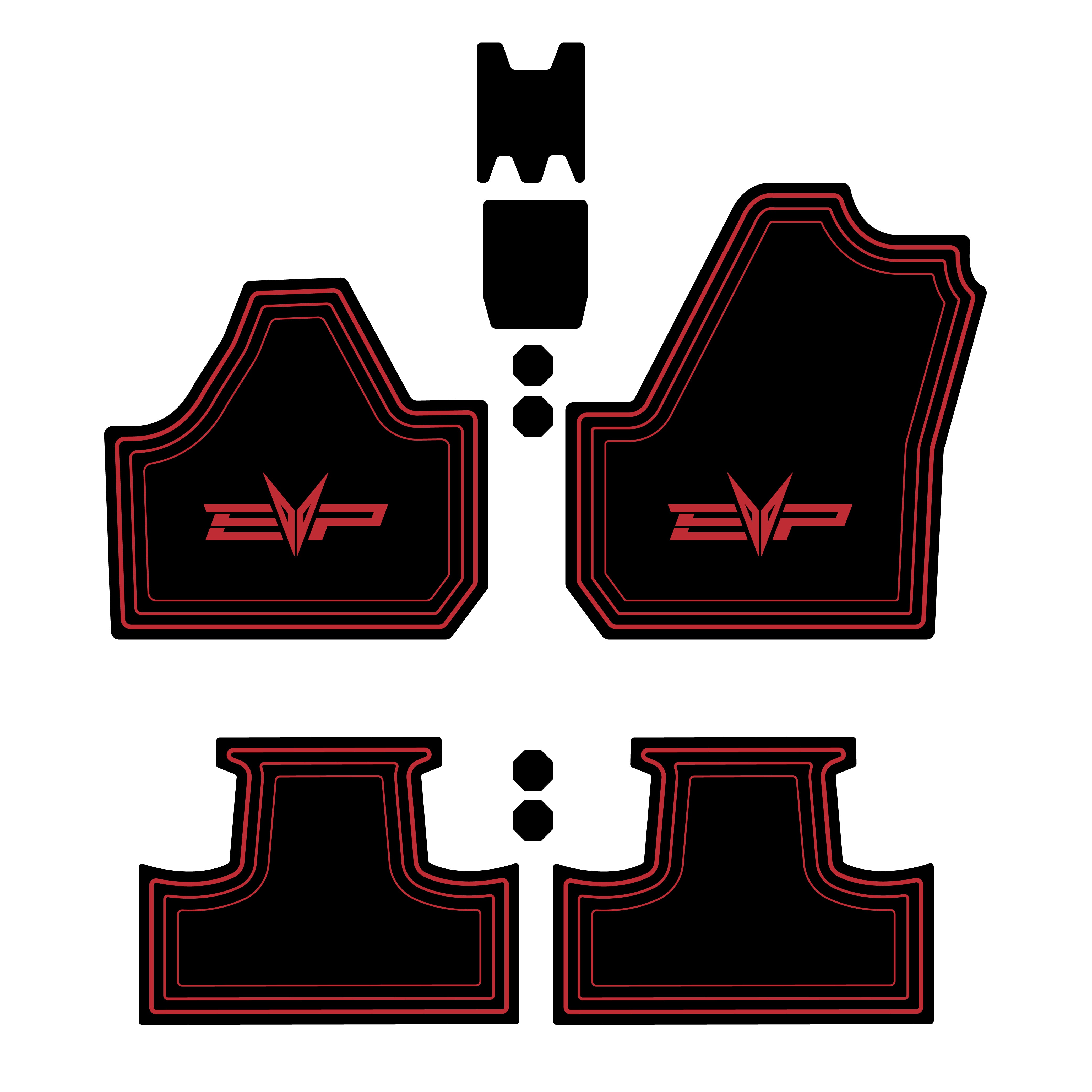 Level-up your Maverick X3's interior styling with Custom EVP Floor Mats! Available for two and four-seat models, this easy-to-install floor mat kit instantly transforms the cockpit's appearance and also delivers enhanced traction in wet or dry conditions. Pair with custom EVP Door Mats (for TMW Doors only) and OEM LinQ Cooler Top Mat for the ultimate total interior styling transformation!