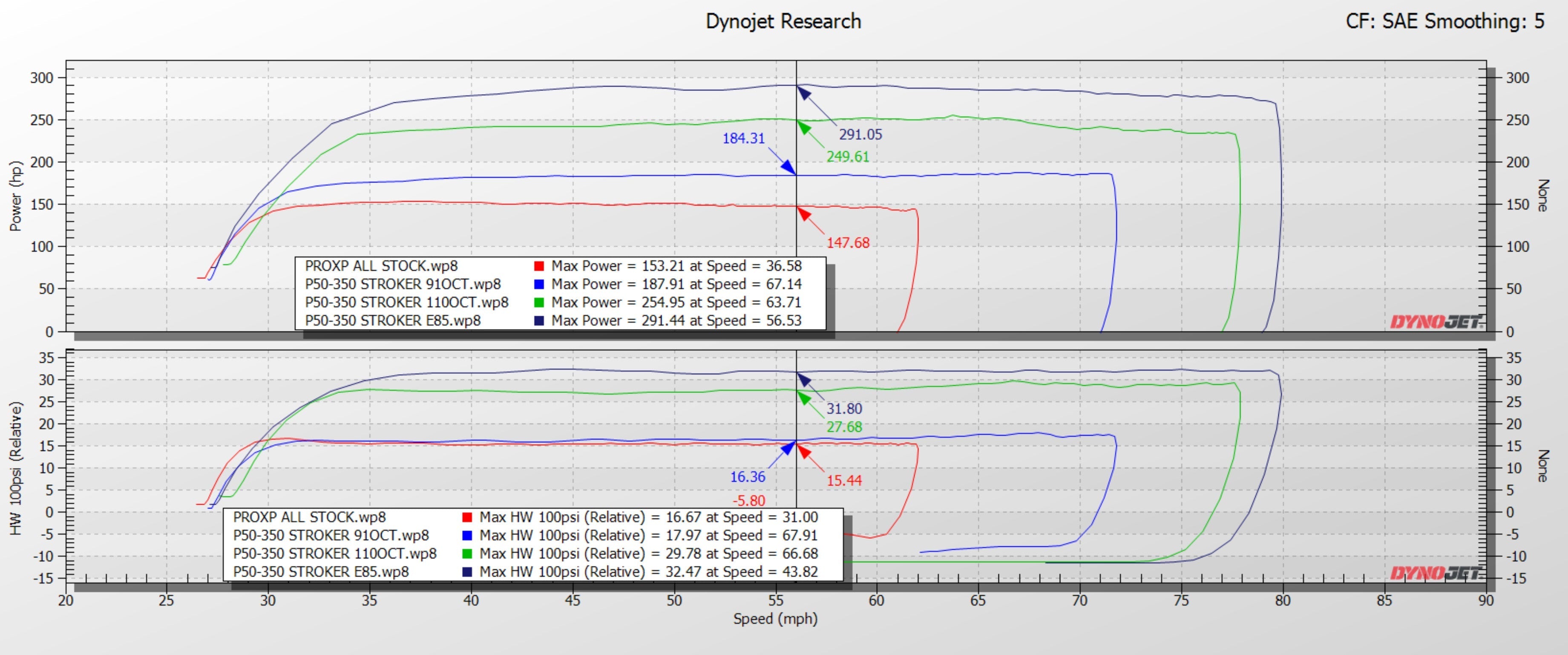 Another new product included in the P50-350 Turbo System is the EVP Rising Rate High-Pressure Fuel Pump & Surge Tank Kit. The rising rate kit features a built-in regulator that allows the integrated 340LPH pump to keep up with fuel demands, as well as a newly developed billet aluminum fuel hat to make it a 100% drop-in replacement for the OEM unit. Now you can line up with the big dogs on the drag strip and throw roosts like a pro without worrying about fuel starvation.