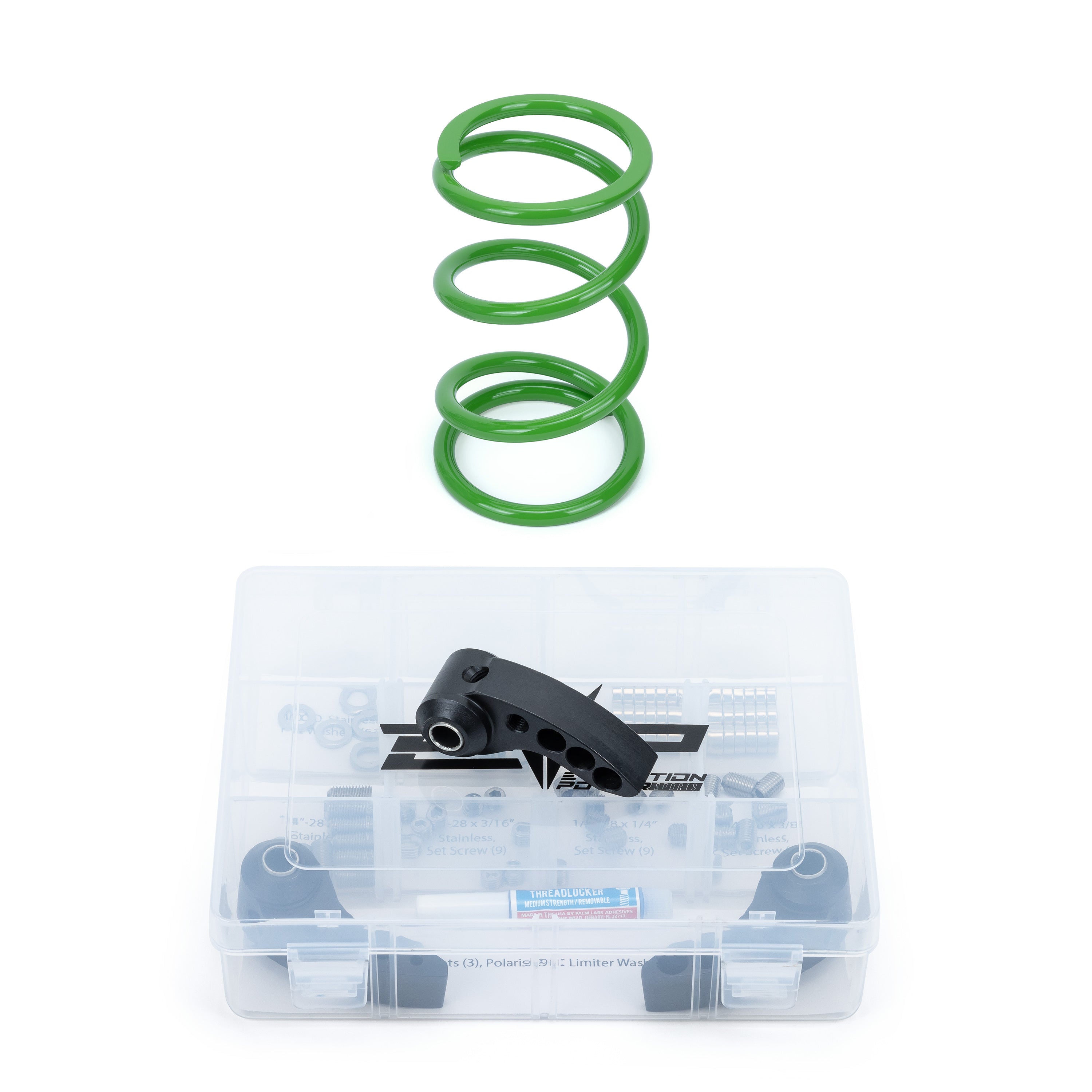 The new EVP RZR Pro R Clutch kits have enough adjustability to compensate for all EVP Pro R ECU Power Flash horsepower levels from Stage 1 up to (and including) the Paragon P54-330 Turbo System. This kit keeps clutch RPM engagement low and close to stock for a smooth takeoff, but with the included magnetic weights, it also has the adjustability to add higher engagement secondary spring. In addition, the "non-notched" profile is designed specifically to cater to the geometry of the OEM Polaris clutch.