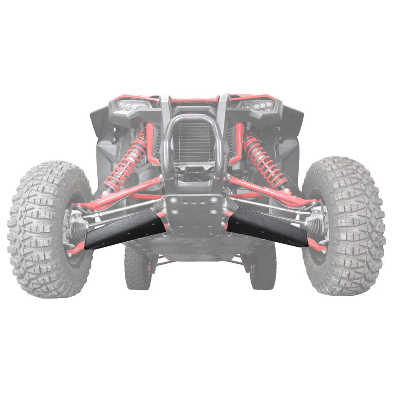The Honda Talon 1000R UHMW A-Arm Guards by Factory UTV offer unparalleled a-arm protection. These guards feature a molded design for a secure fit and are constructed from sturdy 3/8 inch UHMW plastic, ensuring your a-arms are shielded from rough and challenging terrain.