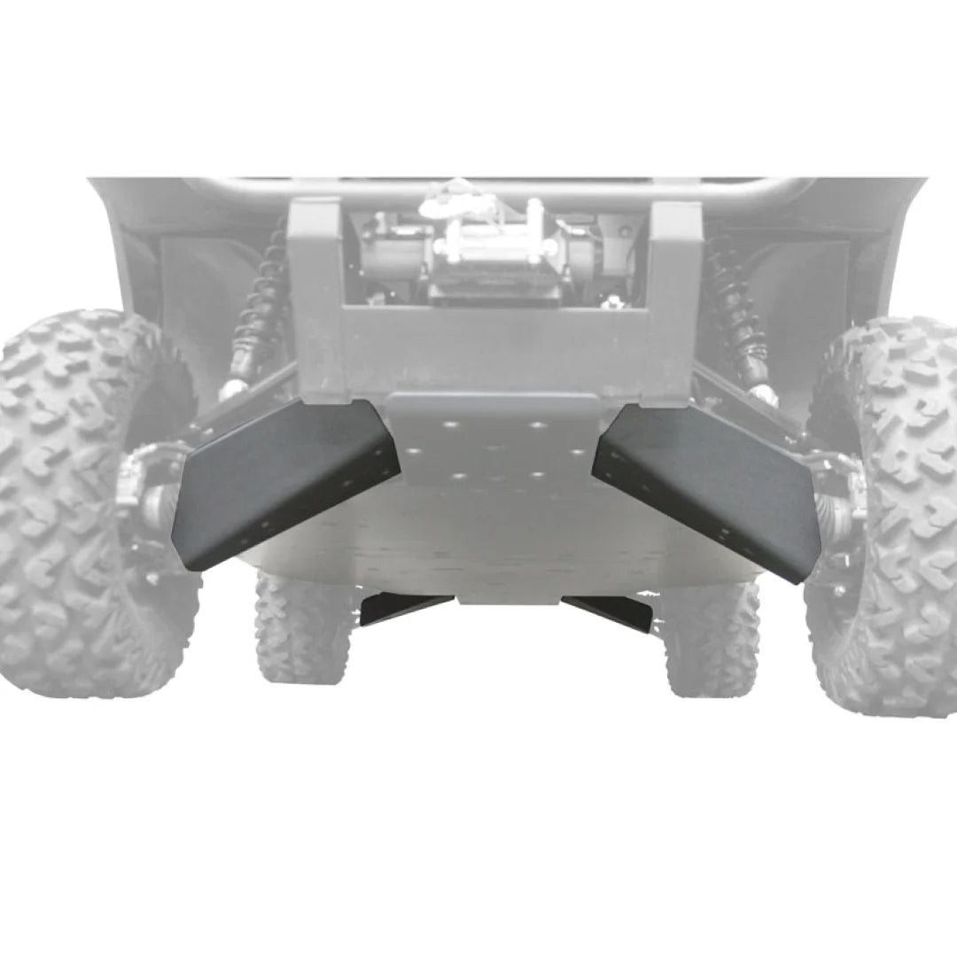 The Kawasaki Mule Pro UHMW A-Arm Guards by Factory UTV offer unparalleled a-arm protection. These guards feature a molded design for a secure fit and are constructed from sturdy 3/8 inch UHMW plastic, ensuring your a-arms are shielded from rough and challenging terrain.
