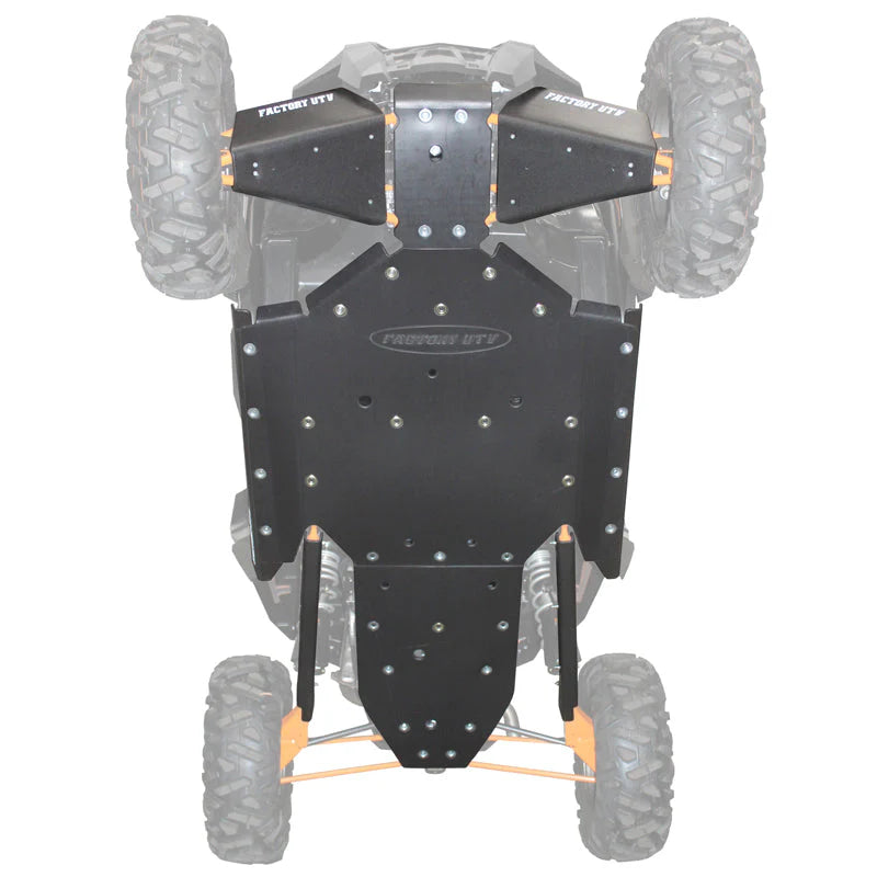 Factory UTV’s UHMW Ultimate Skid Packages are the gold standard for UTV protection. The Ultimate UHMW Package comes with Skid Plate, Rock Sliders, A-Arm Guards and Trailing A-Arm Guards.