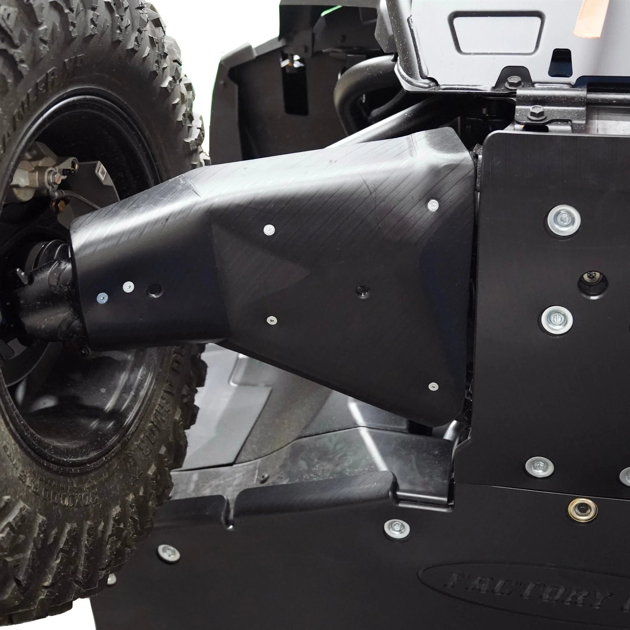 The Polaris Xpedition UHMW A-Arm Guards by Factory UTV offer unparalleled a-arm protection. These guards feature a molded design for a secure fit and are constructed from sturdy 3/8 inch UHMW plastic, ensuring your a-arms are shielded from rough and challenging terrain.