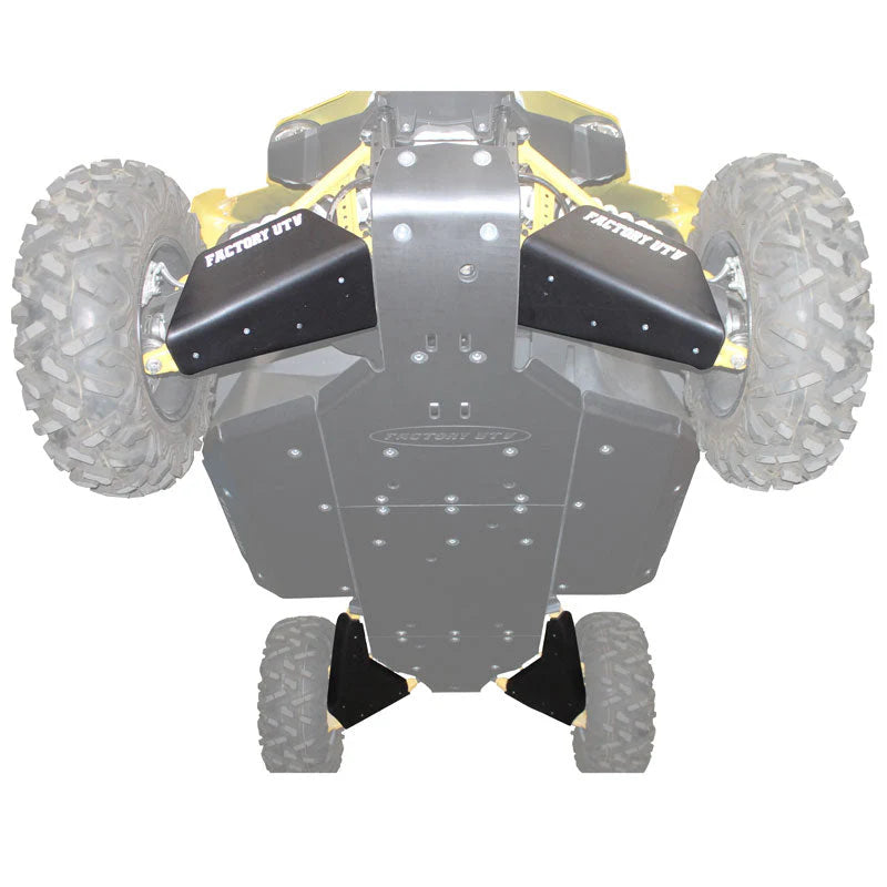 The Yamaha YXZ 1000 UHMW A-Arm Guards by Factory UTV offer unparalleled a-arm protection. These guards feature a molded design for a secure fit and are constructed from sturdy 3/8 inch UHMW plastic, ensuring your a-arms are shielded from rough and challenging terrain.