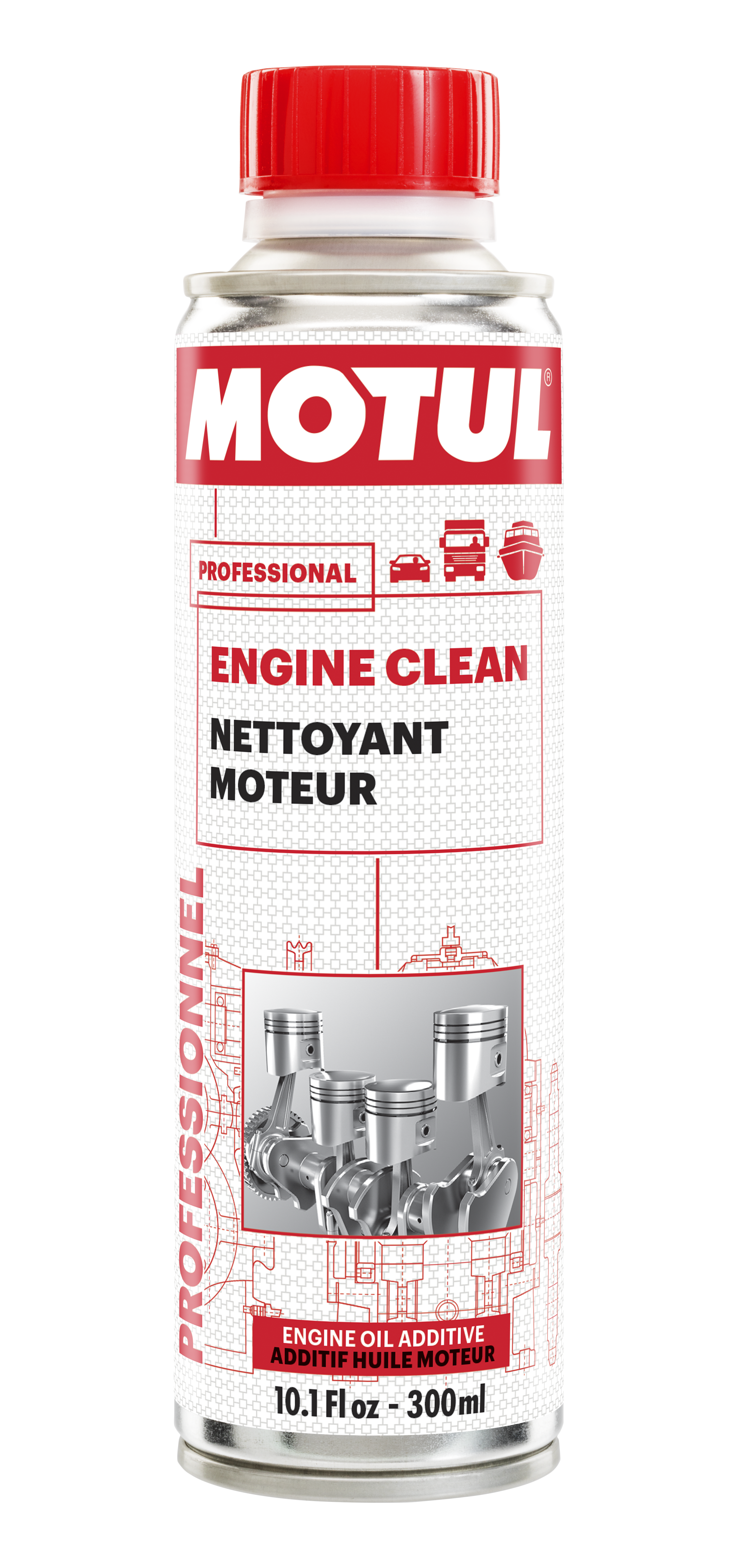 Cleaning additive to be added directly in the lubrication circuit. Thanks to this additive, compression is increased, engine runs cleaner, creates less pollutants emissions, is more protected and offers higher performances. It lowers also consumption and works as a deposit and residue remover from piston rings, gaps, hydraulic valve lifters and valve train. Engine Clean e?iciently dissolves contamination and deposits in the oil system. These are then mixed with the oil to be easily removed during the oil change. Motul Engine Clean contains highly e?ective anti-friction properties that reliably protect the engine during the cleaning process.