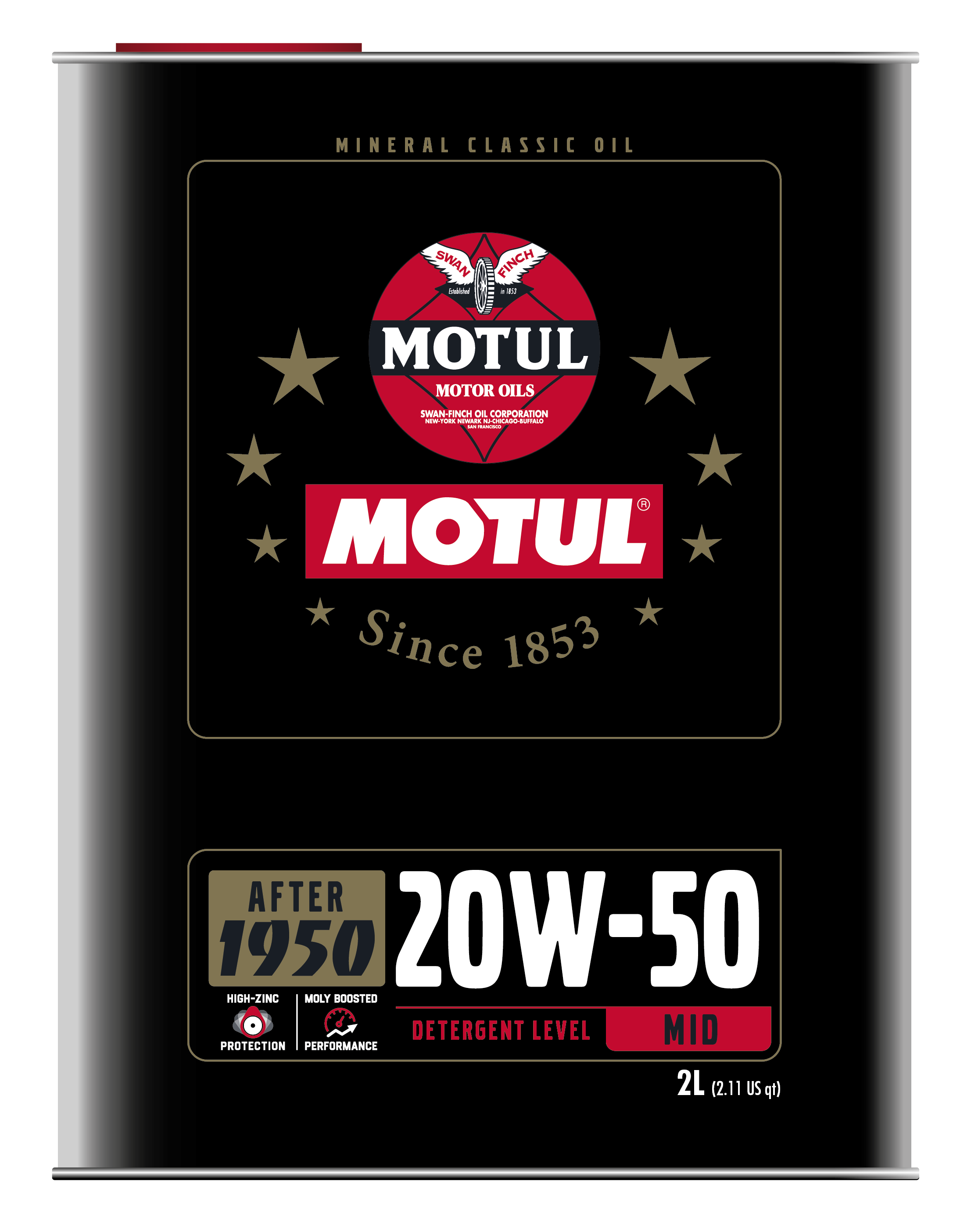 Premium Mineral multigrade engine oil specially designed for classic engines built between 1950 and 1970. Lubricant for 4 stroke Gasoline or Diesel engines, naturally aspirated or turbocharged with carburetor or injection, SAE 20W-50 formula meets 1950-1970 standards (API SF/CC) and combines MOTUL's current advanced technology, developed in motorsports, to deliver a complete performance package for your classic car.