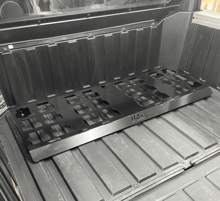 Our Milwaukee Packout Mount is the perfect storage solution for your Polaris Xpedition. This mount uses existing factory mounting holes along with two self-drilling screws for added stability. Installation is quick and easy—just remove three bed bolts and replace them with the supplied hardware, then secure the front of the mount with the included self-drilling screws. We CNC laser-cut each Milwaukee Packout Mount in-house from 10-gauge P.O. steel and finish it with a durable black powder coat.