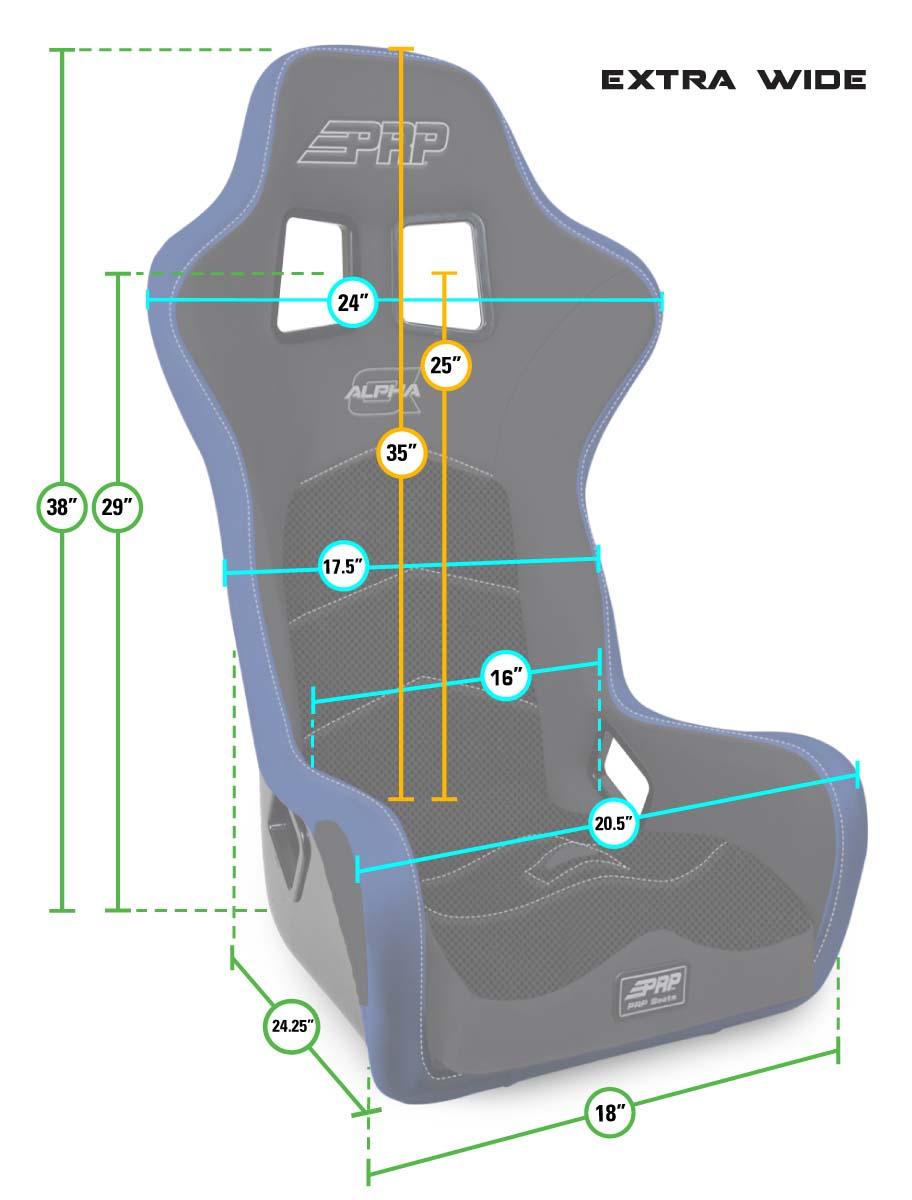 The first of its kind! PRP Seats' Alpha Composite Seat specifically Built for Off-Road. The Alpha Composite Seat is made with thick high-density foam all around for added comfort, and large harness slots that allow a fresh air hose to fit through. The injection molded, contoured bottom cushion provides great comfort during long endurance races. The recessed headrest and shoulder area creates more helmet room, and allows you to use a HANS device without the seat pushing your chest forward. Keeping your spine in-line at the correct angle while seated. The large harness slots on the shoulders allow you to fit the harness, and a fresh air hose through at the same time. Fits Drivers with waist size up to 42" comfortably. Requires PRP composite seat mounts to install. Design your own and Make it Yours! With over 60+ different colors and materials to choose from, you can customize the perfect seat for your ride. Extra options available include Front Goggle Pockets, Heated Seats, Air Lumbar, and various Diamond Stitches. Features: Injection molded, contoured bottom cushion Thicker, higher density foam all around Reclined headrest for more helmet room Recessed shoulder area for HANS compatibility Larger shoulder harness slots allow room for fresh air hose Angled lap belt slots provides the proper angle to install lap belts Higher lateral containment keeps your legs held in
