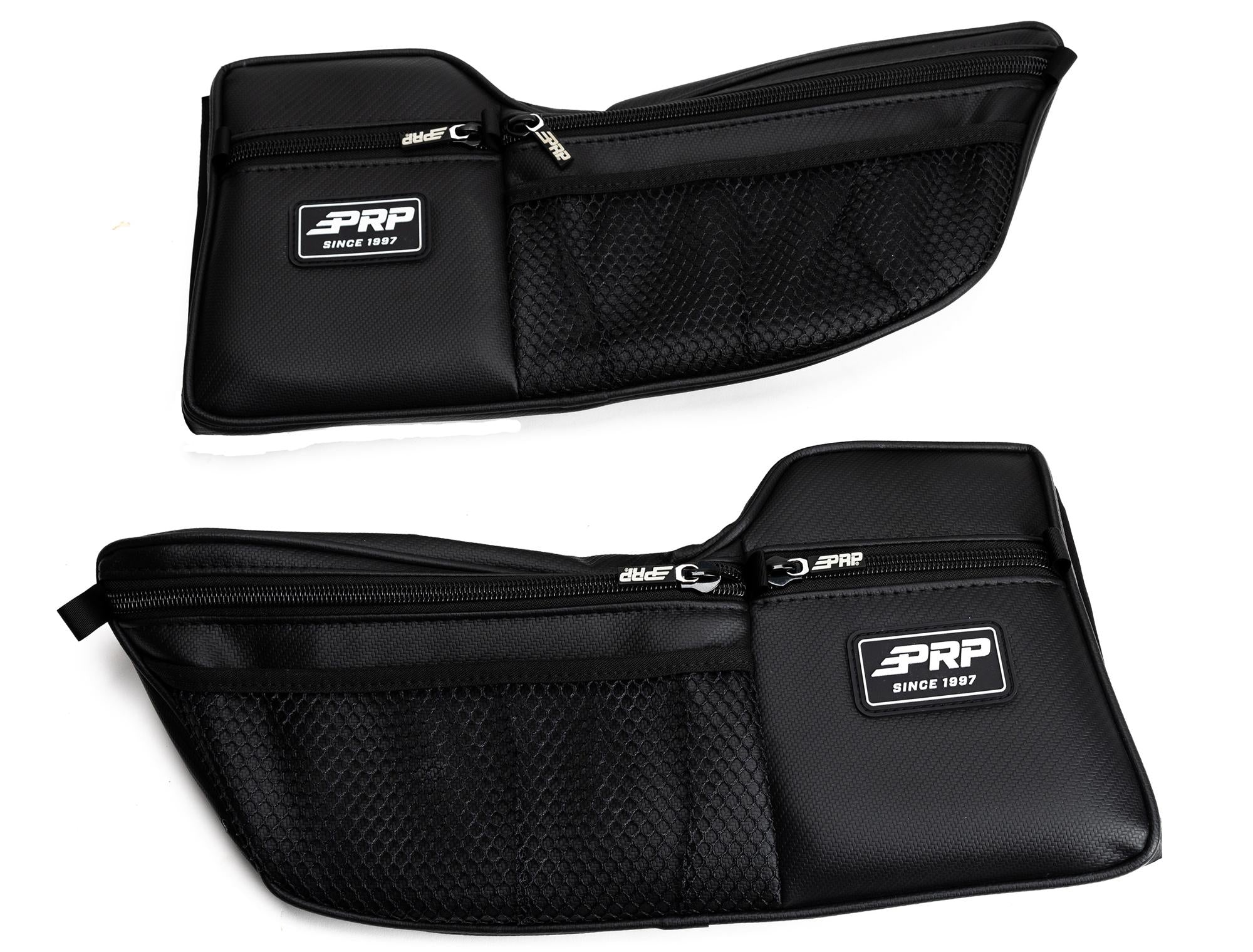 Protect your knees and add storage to your factory doors with PRP's Rear Door Bags with Knee Pad for 2025+ Polaris PRO XP4, PRO S4, or PRO R4. These bags are great for holding onto the extra items you need while you ride. With storage space at a premium in UTV's, these door bags hold all your essentials. Conveniently located right next to you on the door (so you can still access items you need while strapped in your harnesses). Great for storing your cell phone, water bottles, goggles, glasses, keys, spare rags. The door bags keep these items secure, and protected from dust, mud, & dirt. Made from durable, puncture resistant vinyl that is water resistant. The front storage compartment contains a thick foam cushion to protect your knees from banging against the door in rough terrain. Or if you want, remove this foam piece, and you can use that pocket as another storage compartment. The mesh pocket on the front is great for quickly accessing items like water bottles. Includes heavy duty zippers slide easily even when dirty, and have rubberized ends so they wont make noise as you drive. Each bag is designed to perfectly fit on the factory front doors of 2025+ Polaris RZR PRO XP4, PRO S4, or PRO R4. Each bag attaches to the door using the factory bolts, and several push pins (drilling required). Sold as a pair (Driver and Passenger). Fitment: 2025 and newer Polaris RZR PRO XP4, PRO S4, PRO R4 with OEM Doors. *Does not fit on 2020-2024 RZR Models. Check out our other PRP Door Bags that fit those years