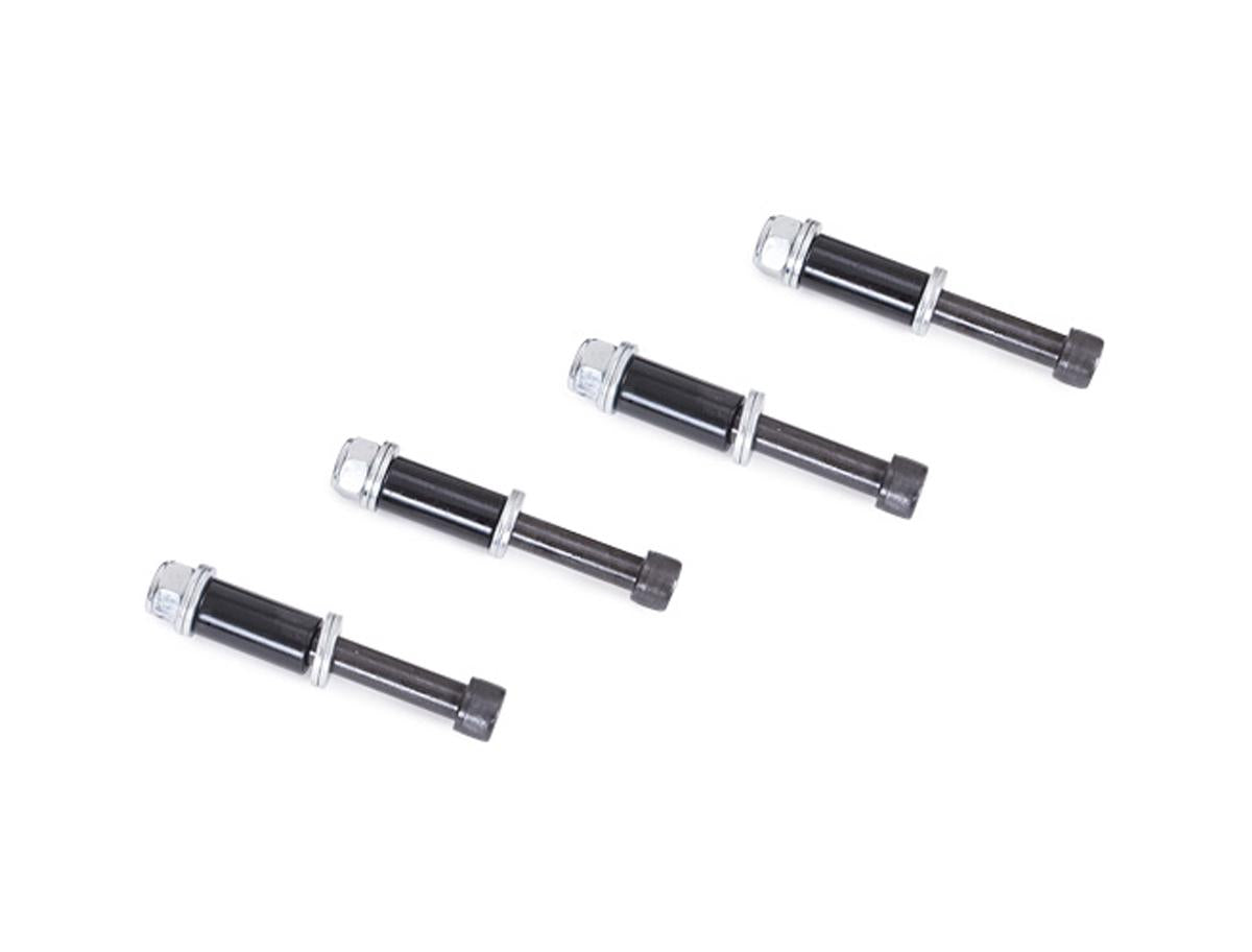 INCLUDES 4 longer shock bolts (M12 X 1.75 X 110MM for front) 4 shock bolt washers (M12 Flat) 4 shock bolt spacers powder coated black (1? for front) 4 shock bolt nuts (M12 X 1.75)