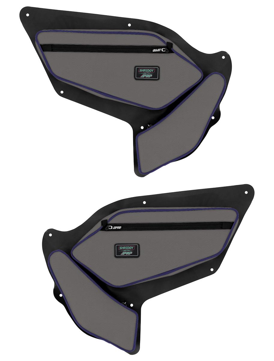 PRP Shreddy Front Door Bags with Knee Pad for Polaris RZR PRO XP, PRO R, Turbo R (Pair), Grey and Purple