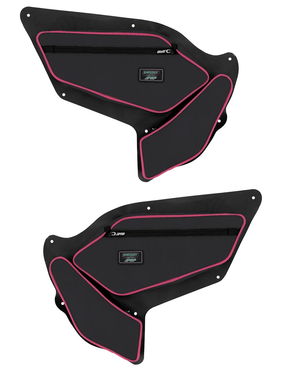 PRP Shreddy Front Door Bags with Knee Pad for Polaris RZR PRO XP, PRO R, Turbo R (Pair), Black and Pink