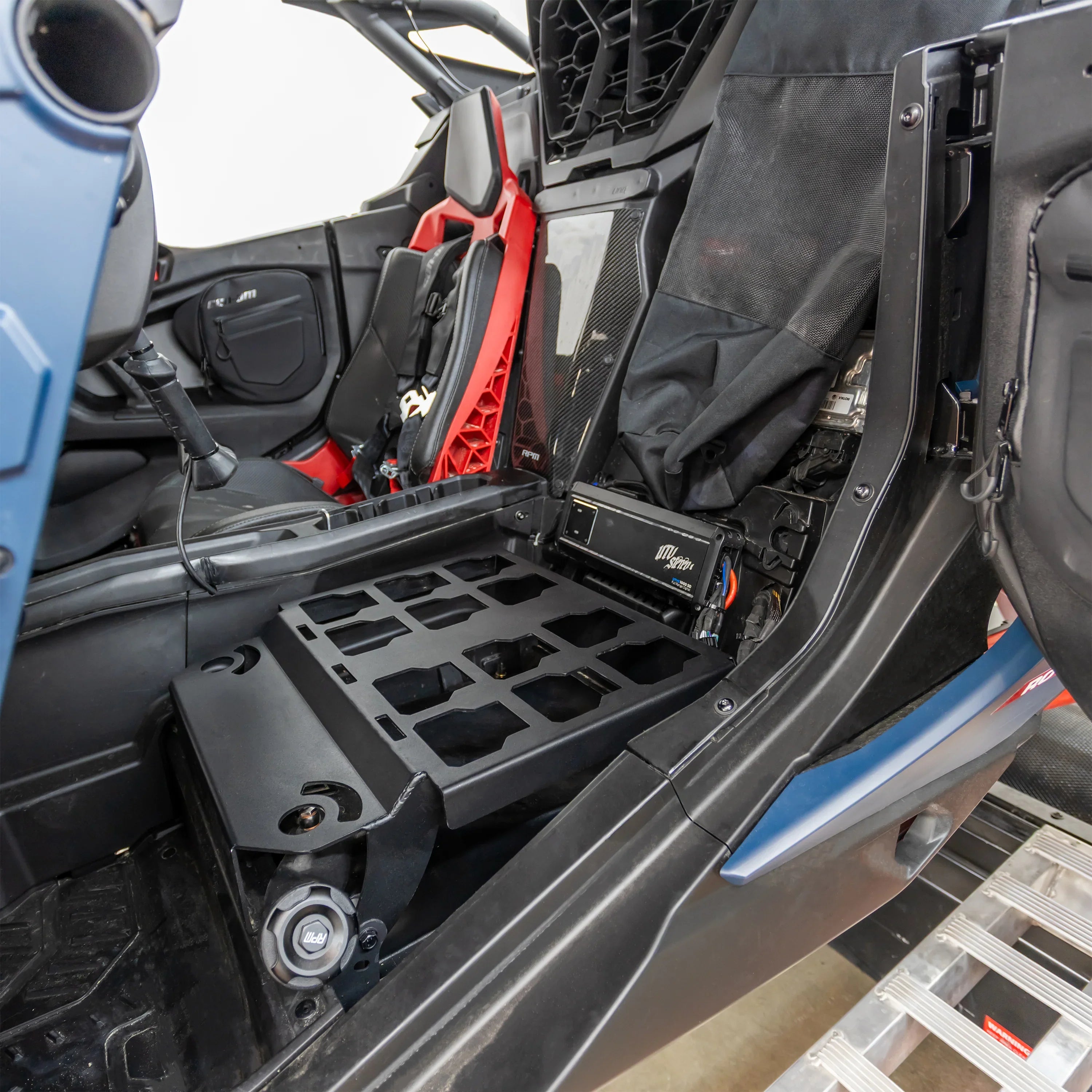 If you're looking to maximize storage and increase your ability to carry spare parts, tools, or even coolers in your Maverick R MAX, look no further! This setup replaces either passenger seat and is fully compatible with the Milwaukee® Packout system.