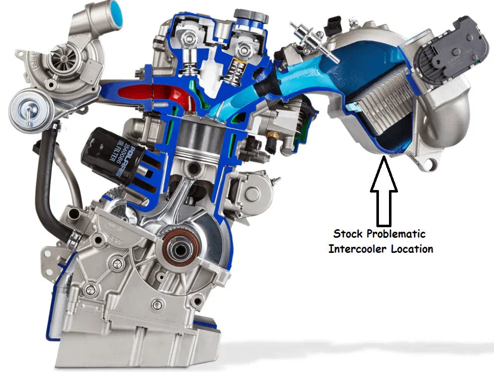 After a lot of designing, a lot of testing, and a lot of headaches from failed stock intercoolers, RPM has stepped up once again to provide a Big Core, high flowing, Billet aluminum intercooler for the RZR XP Turbo and XP Pro Turbo. Unlike others, each side of the RPM intercooler is completely sealed to the edges of the intake using our specific EPDM seal. This intercooler, although is a direct drop in replacement, is 5% larger resulting in a massive 25% efficiency gain. These huge gains mean lower IAT's and more, safer power whether it's a stock machine or big turbo upgrade! It's no secret the factory intercooler is a failure prone piece that once failed causes catastrophic engine damage from coolant consumption and often hydro locking bending resulting in a bent rod. All these issues and worries are easily eliminated with the RPM Big Core intercooler. Along with being a drop in replacement this intercooler utilizes the factory hose so no need to cut or modify your hoses to make this work that others require.