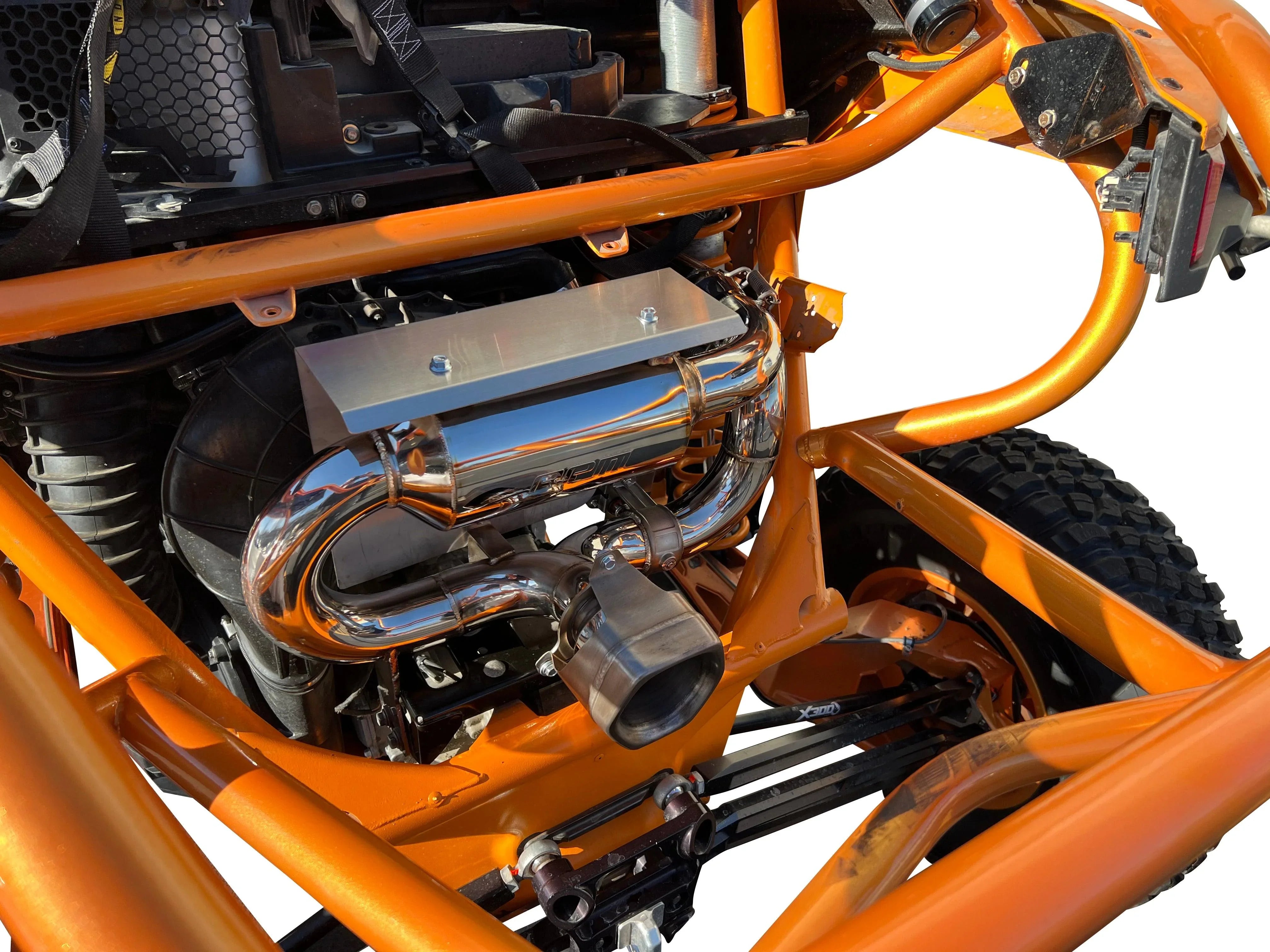 How do we make the industry's best selling X3 Muffler better you ask? We incorporate RPM SxS's trademark E-Valve system into it! Our E-Valve allows us to bypass the muffler and send exhaust notes STRAGHT out the back creating an insanely awesome sound X3! Flip the switch back to closed and you're back to the RPM SxS X3 Sport Muffler! When closed this is not an obnoxious straight through system that provides no back pressure and sounds horrible, this system utilizes a high flow muffler following the stock exhaust bends and utilizes the stock muffler tip and exits the stock location. Stock spark arrestor can still be used! Built to utilize the OEM rear fascia.