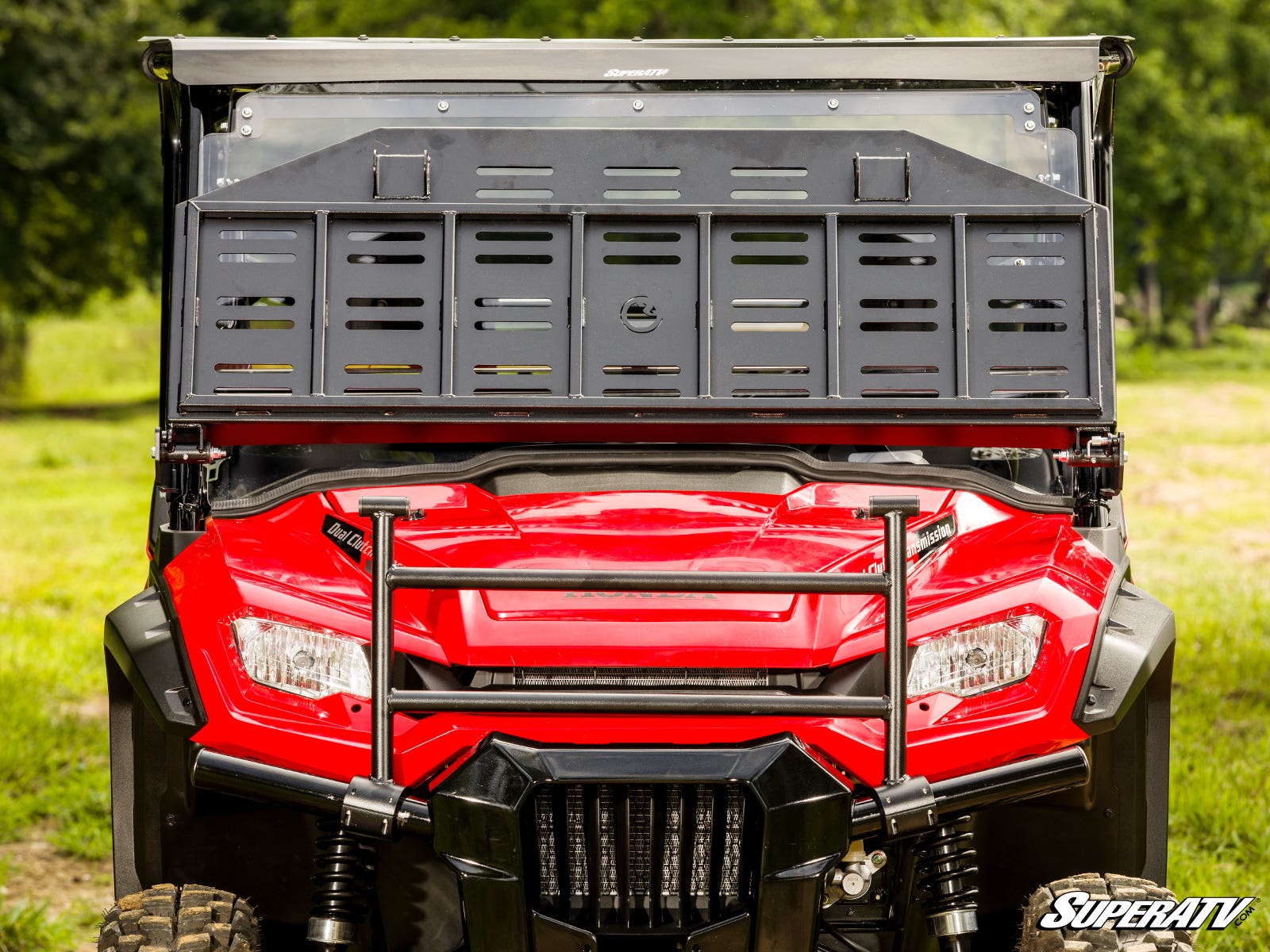 You can’t have a Honda Pioneer hood rack that blocks access to your hood panel. Ours flips out of the way easily. Pull out the two quick-release pins and flip it up. It’ll lock in place so you can get to your hood without breaking a sweat.