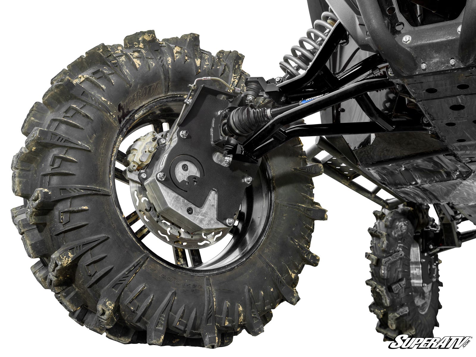 | 45" | 1.5" Forward Offset A-Arms | Max tire sizes are measured at full compression and full turn. The given tires sizes are the largest we fit without rubbing. With minor trimming or a small amount of rub, larger tire sizes can be used. |