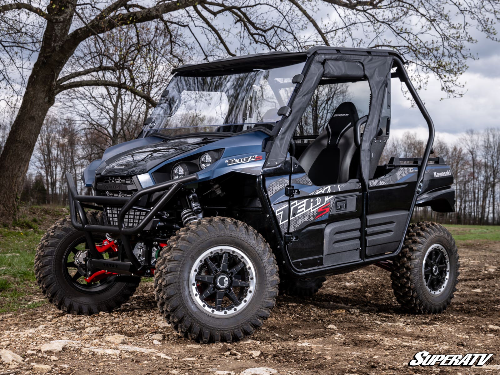 If you're looking for a comfortable ride with the right level of protection, the stock doors on your Teryx S aren't enough. That's where SuperATV's Kawasaki Teryx S Primal Soft Cab Enclosure Upper Doors come in. They're built with premium Pel-Tek technology and high-quality materials that make them tough and water-resistant. It's the best of both worlds—keep them closed for more protection or roll them down for more airflow. These upper doors give you the coverage you're looking for and they're compatible with roofs and windshields. You're that much closer to a full cab enclosure.