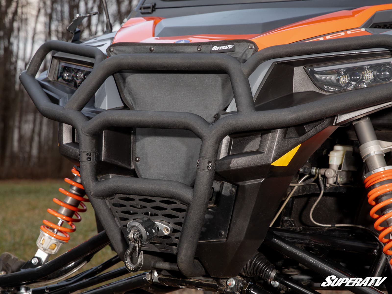 A full cab enclosure isn’t cutting the cold this riding season. Add SuperATV’s Grille Cover to your Polaris General. It blocks airflow through your radiator to help maintain higher temperatures during those winter months. Plus, it works with SuperATV’s Cab Heater to make your cab even warmer.