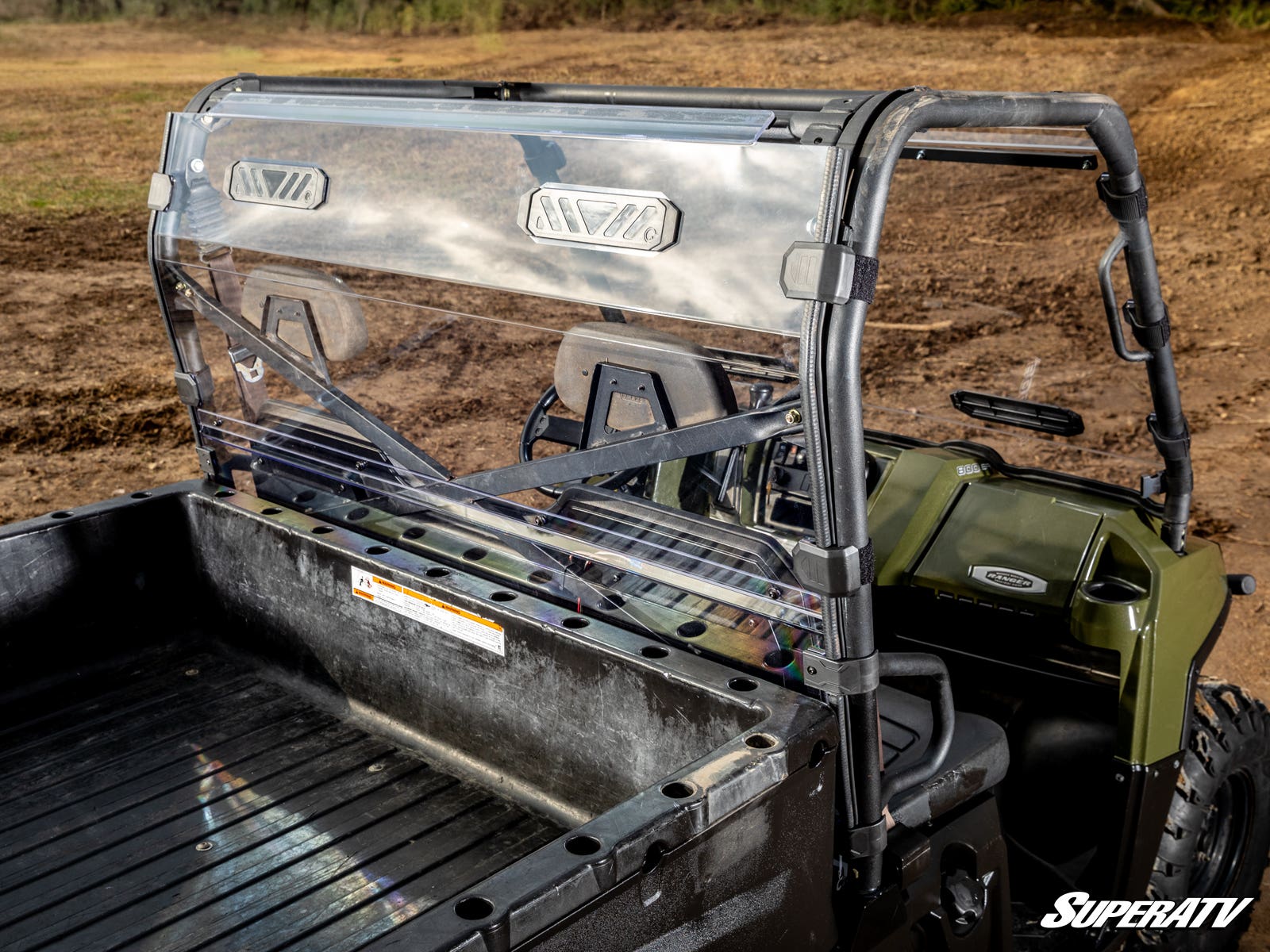 A rear windshield might be the last thing that comes to mind when you think about making your cab more comfortable. After all, it’s behind you, so how much of a difference could it make? The answer: a lot. Installing SuperATV’s Vented Full Rear Windshield on your Polaris Ranger Full Size 800 makes a lot of difference. A quality rear windshield doesn’t just shield against the elements. It also blocks any rocks and debris that get kicked up by your rear tires, and it prevents that annoying suction sound that happens when you run a front windshield alone. And this windshield includes handy BreezeRite vents to make controlling airflow easy.