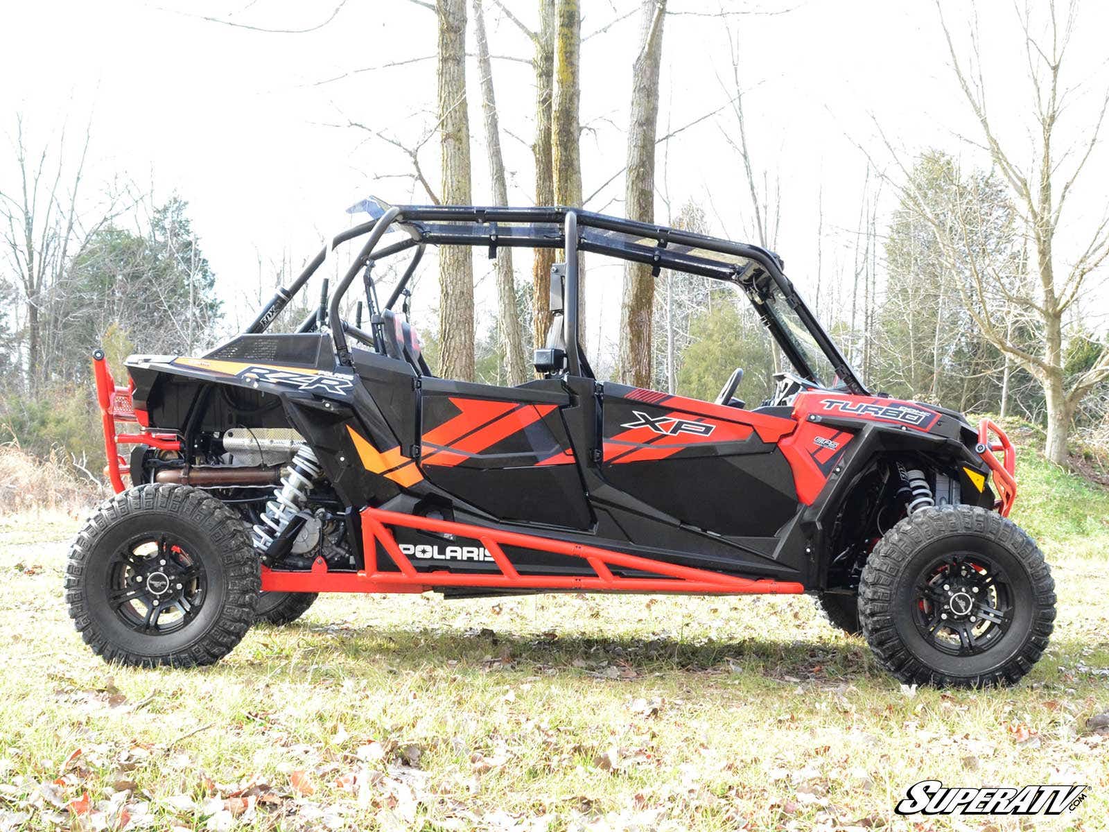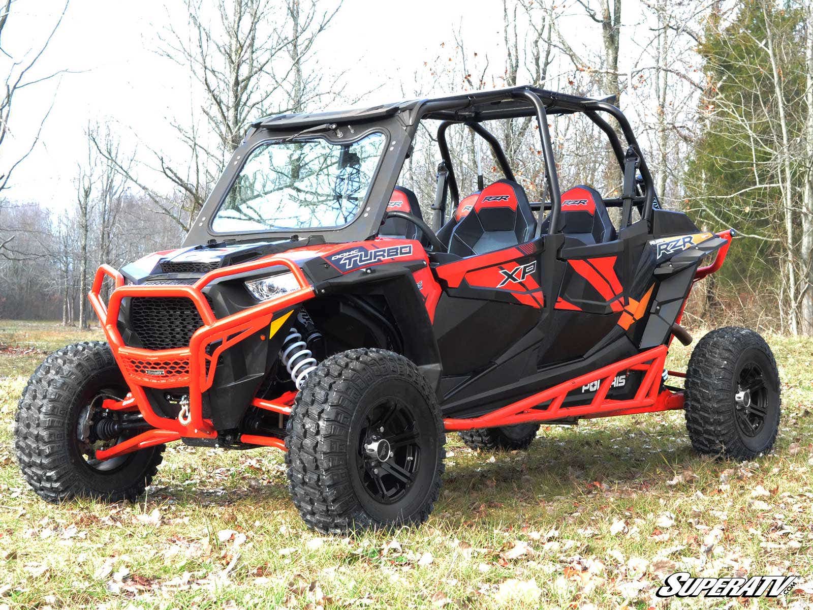 SuperATV’s nerf bars are built to last with 1.75” diameter heavy-duty steel tubing—tough enough to handle the weight your RZR 4 900 can throw around. To top it off, we covered these tree kickers in a durable, UV resistant powder coating to keep them looking good for years. We didn’t skimp out on any details and designed this kit to fit your 4 seater securely and easily so you can slap it on your machine and go with as little down time as possible.