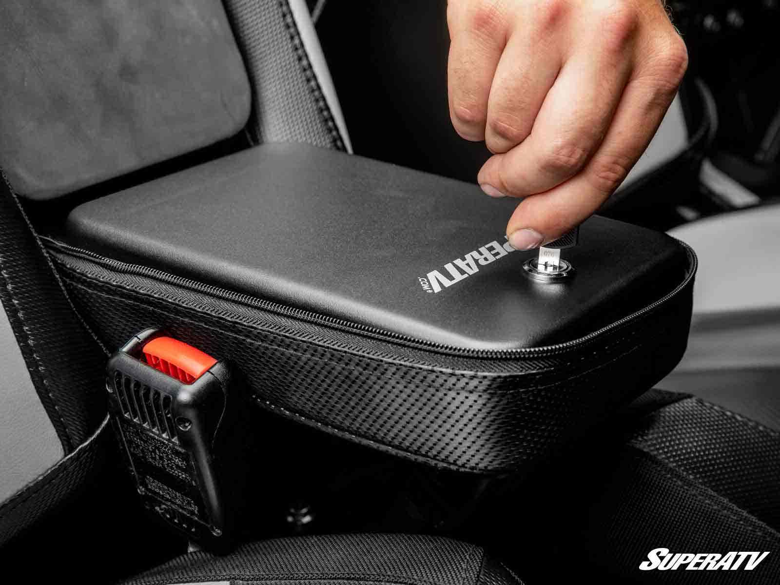 Your RZR is, overall, a pretty comfortable ride. It is missing one thing that would make a big difference though—an armrest. SuperATV’s Polaris RZR Armrest Gun Safe works overtime to make your ride more comfortable and keep your valuables safe. It’s a super cushy armrest with a lockable internal box that’s built to fit cargo as large as a full-sized Glock. You can use it to store pretty much anything you don’t want to lose or get soaked, from cell phones to car keys and wallets. Plus, it’s simple to install with our included instructions.