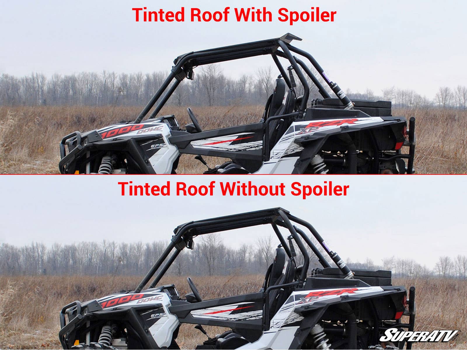Keep the hot sun out of your RZR XP Turbo while you're on the trail with a Tinted Roof from SuperATV. Constructed of 1/4" polycarbonate, this roof will provide protection from the sun, sticks and other debris while allowing light to pass through. Each roof comes equipped with all brackets and hardware for an easy installation. We want your UTV back on the trail as badly as you do.
