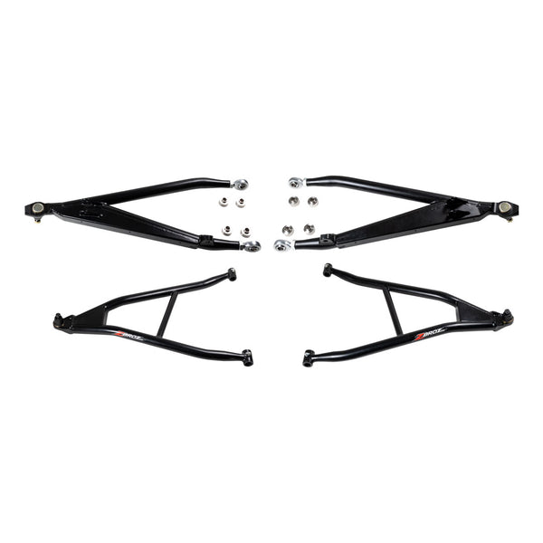 Our ZBROZ HD PRO MAX A-arm Kit for the Can-Am Maverick X3 & 72” models takes strength to the next level. It was built to take on extreme mountain trails, rock crawling, and desert/dune rally action. It provides maximum ground clearance designs that give you the added advantage of adding larger wheels and tires and allows you to drive over those a-arm snagging obstacles while still protecting your front axles. Now Smart Shox compatible.