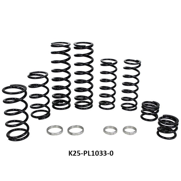 Ride Quality Improvements of this Dual Rate Spring Kit include - 1" to 2" Increased Ride Height - Delivers a Smoother and more Comfortable Ride in any terrain - Reduced Body Roll - Increased Bottoming Resistance without sacrificing Low-Speed Compliance - Reduced Rear Bucking - High Tensile Light Weight Springs - Rear Billet Crossover Rings for a fine-tuning crossover point.